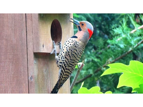 The Northern Flicker lives on a diet of insects it forages on the ground or trees. Its song is a loud – Flicker-flicker-flicker.